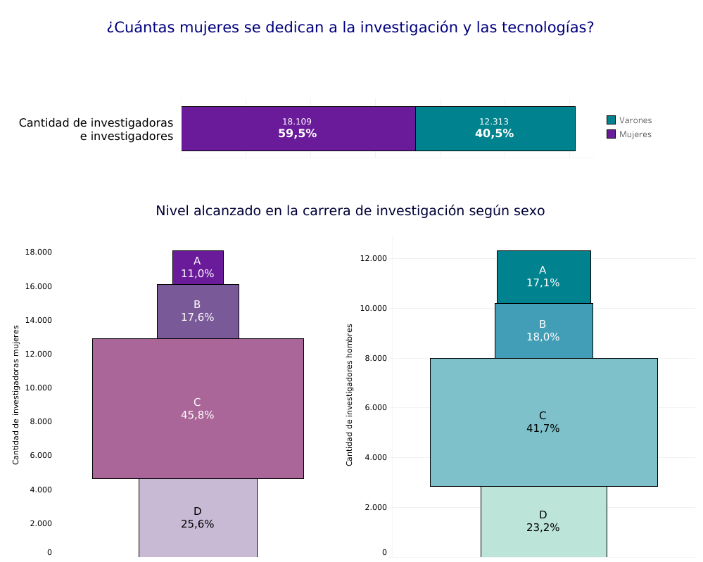 Estas estadísticas surgen del diagnóstico nacional del sistema científico y tecnológico realizado en los últimos años, en el que se concluyó que si bien las mujeres que trabajan en el sector de CTI son mayoría, se profundiza la brecha de género en posiciones jerárquicas, en el acceso al financiamiento y en la producción científica y tecnológica, entre otras. A su vez, el diagnóstico echa luz sobre la participación desigual en algunas disciplinas científicas y especialidades en STEM en las que hay escasa representación femenina.
