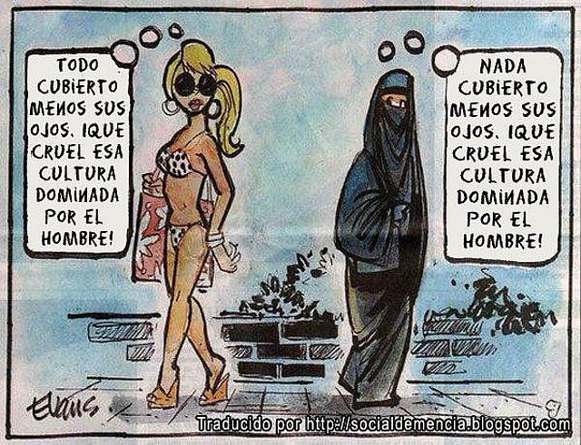 La imagen de la mujer occidental libre se ha construido en el imaginario social como oposición a la mujer árabe o musulmana, que parece estar velada, encerrada, oprimida, pasiva, con su voz y su capacidad de agencia totalmente anuladas. Por lo que “hay que salvarlas”, “sacarlas” de sus países, de su religión o de su cosmovisión con tal de adaptarlas a los parámetros de vida, y de perspectiva feminista, de Occidente.