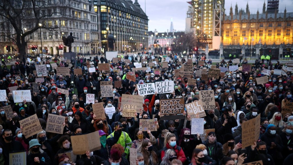 Al grito de ‘Kill The Bill’ (‘Maten al Proyecto de Ley’), el movimiento feminista amplió sus bases y demandas contra este proyecto, formalmente llamado Ley de Policía, Delito, Sentencia y Tribunales, que avanza en el Parlamento tras la aprobación de su segunda lectura esta semana en la Cámara de los Comunes. Según sus promotores, servirá para endurecer penas a delitos graves y prevenir disturbios en los espacios públicos. Para sus detractores, mayoritariamente sectores trabajadores, ambientalistas, antirracistas y feministas, dará más poder a las fuerzas de seguridad para reprimir y limitar concentraciones , y legitimará abusos policiales como los ocurridos en la manifestación por el femicidio de Everard.